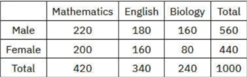 What is the ratio of the number of female Mathematics students to the number if male Biology students?