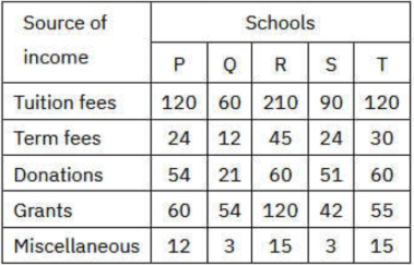 Instruction: Questions 56 60 are based on the data given in the table below. Answer each of the following questions based on the given data. The table shows the annual income of five schools P Q. R. S and T in thousands Birr.