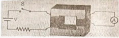 The primary coil of a transformer is connected to a battery, a resistor, and a switch. The secondary coil is connected to an ammeter. What does the ammeter show when the switch is thrown closed?