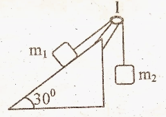 A block of mass m=10kg placed on a frictionless incline plane connected to mass m2=15kg using a string of negligible mass passing over a pulley of moment of inertia I=0.25kgm2 and radius R=10cm as shown in the diagram. What is the torque on the pulley?