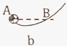 Galileo carried out a �thought� experiment on motion. The line between A and B represents a surface and the center of the ball is placed at A. what would happen in each of the three situations shown in the figure below, without friction when the ball is released?