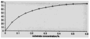 The following graph shows the rate of reaction of catalase enzyme at a constant temperature and at different substrate concentration (in