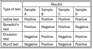 Helen was conducting iodine test for starch. She took two different food samples and placed one of the samples in test tube A and the other in test tube B. She added a few drops of iodine solution to both test tubes. Finally, she observed blue-black color in test tube B, but the sample in test tube A remained unchanged