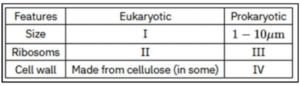 when comparing the two types of cells in the above table, the numbers I, II, III and IV represents, respectively
