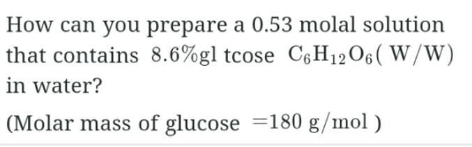 If 3.423 grams of source is dissolved in 200. 0 g of water, what is of molarity of the sucrose solution? (molar mass of sucrose =342.3 V mol)