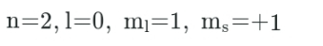 Which set of quantum numbers uniquely defines one of the electrons in an atomic orbital with n =2 and 1=0 ?