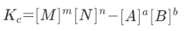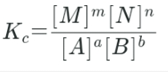 Given a general reaction at equilibrium: aA+bB nM +nN The equilibrium constant ( kc) expression is