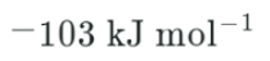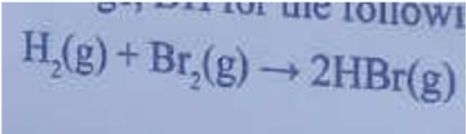 The standard enthalpies of formation of HBr (g ) and Br2 s) are -36 and +31 k J moll —1 (at 298K), respectively. What is the enthalpy change, DH for the fo8owing reaction?