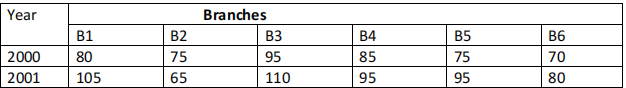 from six Branches: B1, B2, B3, B4, B5 and B6 of a publishing company in 2000 and 2001.
