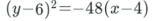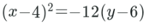Which one of the following is the standard form of the equation of the parabola with vertex (4, 6) and focus (—8, 6) ?