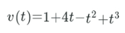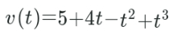 The acceleration of a body at any time I is given by a(t )=4 — 2t 3t with initial velocity v (0) = 5. Then what is the velocity v of the body as a function of time?