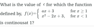 Let ƒ be a continuous function R and c be a number in the domain of ƒ. Which one of the following must be true about the function?