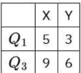 The following table shows the first quartile Q1 and the third quartile Q3 of two data sets X and Y.