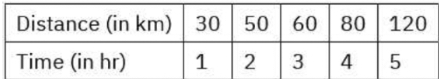The following table is the distance traveled by a car in agiven times