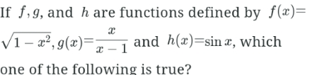 Consider the functions f, g, h and m defined by f(x)=√(x−7), g(x)=log₃x, h(x)=2^(x+1), and m(x)=(x+1)². Which one of the following is true?