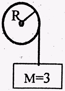 An object with a mass of m = 3.0kg is attached to the free end of a light string wrapped around a pulley of radius R = 0.50m and moment of inertia I = 0.75kgm2. The pulley if free to rotate in a vertical plane about a fixed frictionless axis passing through its cernter as shown in figure. The suspended object is released from rest at 3.60m above the floor. What is the angular momentum of the pulley at the time when the object strikes the floor?