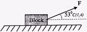 A force of magnitude 20N is applied to a block of mass 2kg that lies on a rough, horizontal surface as shown in figure below. The coefficient of kinetic friction between the bock and surface is 0.4. What is the magnitude of the acceleration of the block?