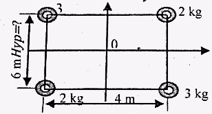 The particles shown in figure below are connected by rectangular rigid nods of negligible mass. The origin of the xy plane is the center of the rectangle. The system rotates in the xy plane about the z axis with an angular speed of 6.00rad/s. what is the rotational kinetic energy of the system?