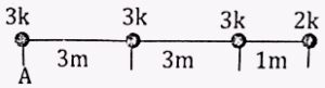 Find the distance of the center of mass of the system shown in the diagram from point A. The rod is mass less