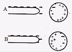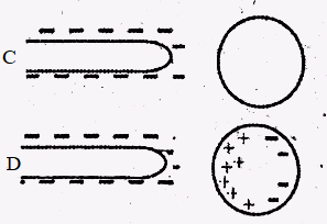 In the sketch below, which best describes the location of the negative charges (electrons) when a negatively charged rod is brought near but not touching the conducting sphere