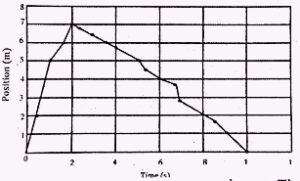 The graph below illustrates the position and time for a cat that runs to catch a rat and then returns with it The cat caught the rat after 2 seconds. What was the cat�s average speed as it returned with rate