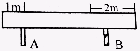A uniform 6m long and 600N beam, rest on two supports as shown. The forces exerted on the beam by the right support B is closes to: