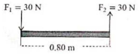 Two coplanar forces acts on a uniform beam as shown in the figure below.