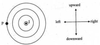 If the direction of the current in the wire is directed out- of the page, then the magnetic needle of the compass will point