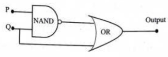 A combination of logic gate is constructed from an NAND gate and an OR gate, as shown in the diagram below.