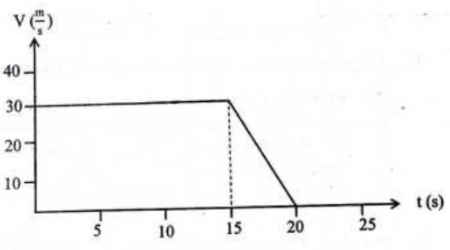 The velocity-time graph of an object moving along a straight line toward east is described by the figure shown Below.