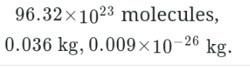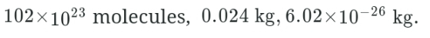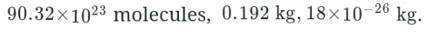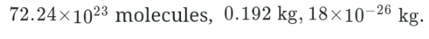 A glass contains 12 mole of water molecule (H2O). The number of water molecules, the mass of water, and the mass of each molecule in the glass are, respectively (Molar mass of H is 1.0 g and O is 16.0 g )
