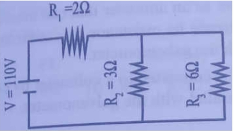 Three resistors are connected across a battery as shown below.